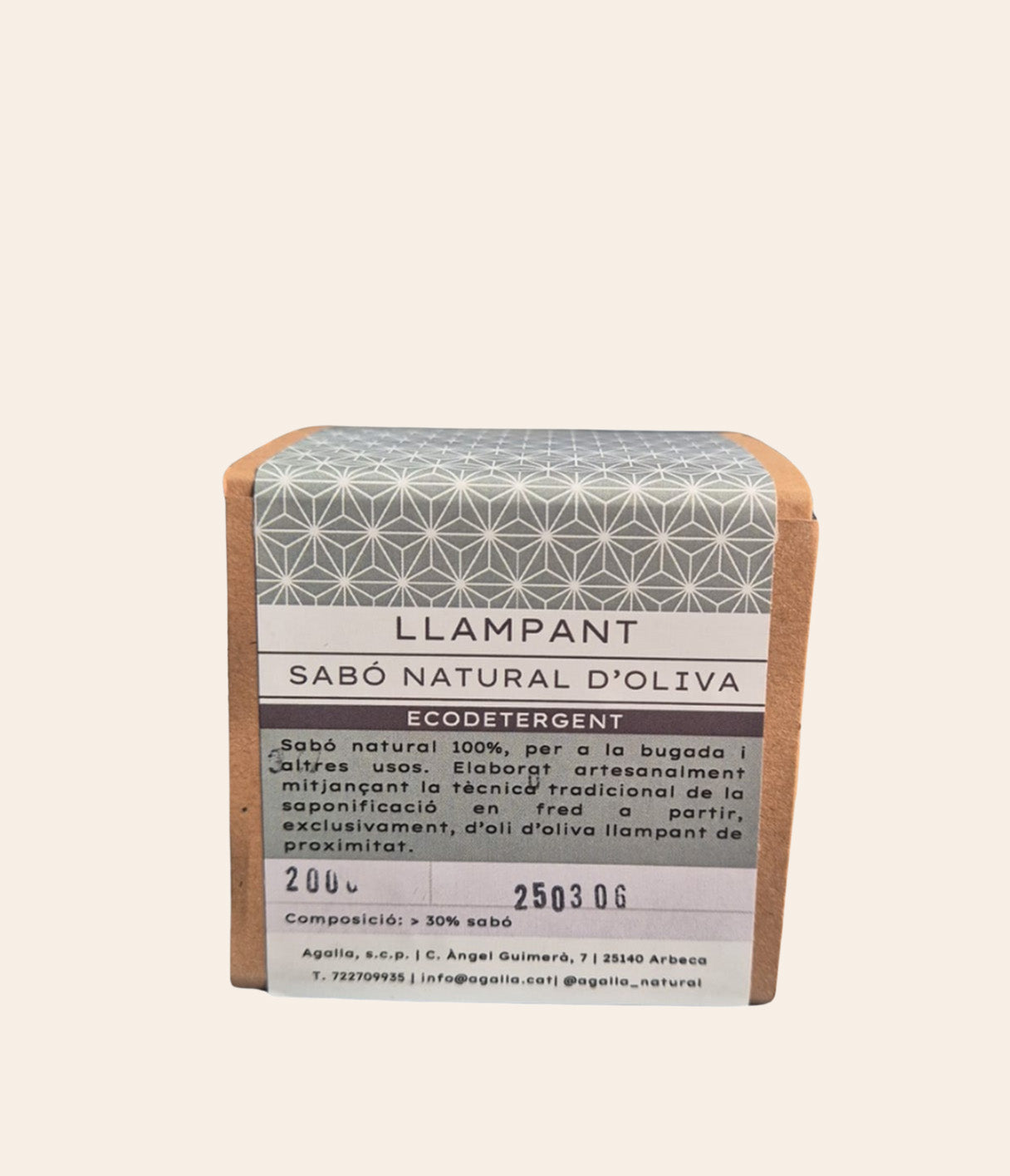 Llampant es un Jabón artesanal en cubo elaborado con aceite de oliva ecológico de proximidad, siguiendo el método tradicional de saponificación en frío, tal como lo hacían nuestras abuelas.