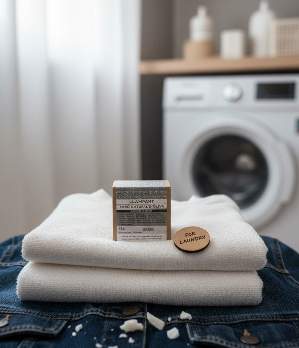 Lavado en lavadora: ralla o diluye el jabón antes de usarlo. Si prefieres comprarlo ya rallado o quieres saber cómo prepararlo, encontrarás toda la información en nuestro jabón de aceite de oliva en copos.